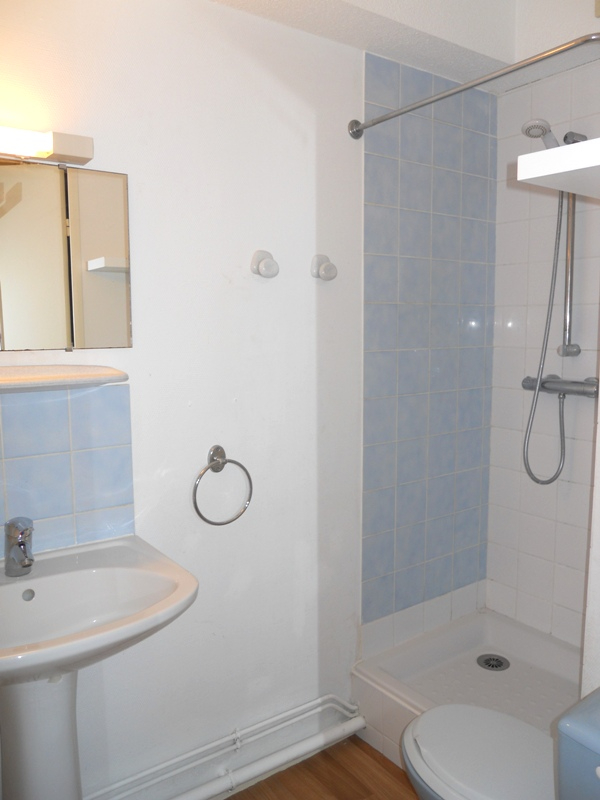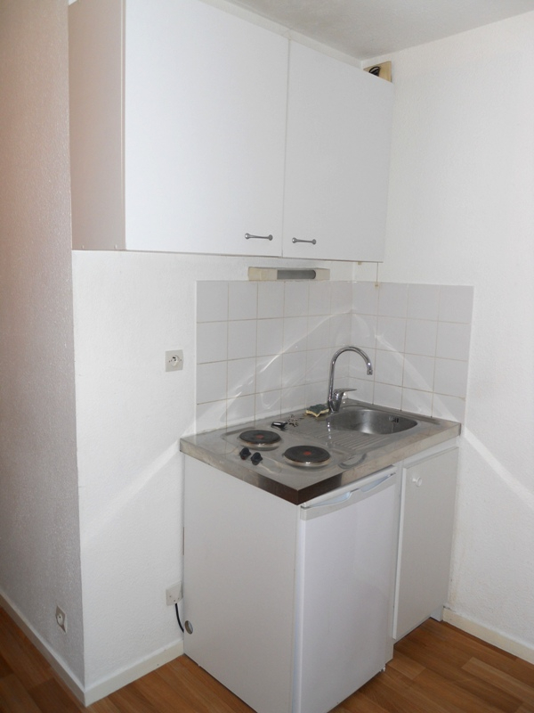 T2 en rez de chaussée comprenant : Entrée avec placard, séjour avec kitchenette équipée (frigo et plaques de cuisson), 1 chambre, salle d'eau avec wc.